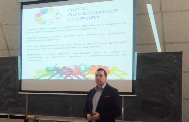 L'associazione bulgara per lo sviluppo sportivo ha preso parte alla conferenza scientifica con un rapporto intitolato "Good Governance in Sport", preparato e presentato da Ivaylo Zdravkov, membro del consiglio di amministrazione dell'organizzazione. Lo studio presentato ha evidenziato buone pratiche che si applicano al buon governo in varie strutture sportive in diversi paesi in tutta Europa. Il progetto è un'iniziativa positiva che si attua al momento, che mira a trovare un modo per analizzare, raccogliere e diffondere pratiche pubblicitarie delle decisioni prese, degli organi di governo e della trasparenza del finanziamento pubblico. Per la prima volta sono stati presentati i dati di uno studio su larga scala sulla trasparenza e integrità di 56 organizzazioni sportive a livello nazionale ed europeo, che mirava a stabilire in che misura le decisioni gestionali e finanziarie fossero a disposizione dei cittadini e delle istituzioni interessate. I dettagli completi del sondaggio saranno presto disponibili su www.eusport.org/GoodGovernance.